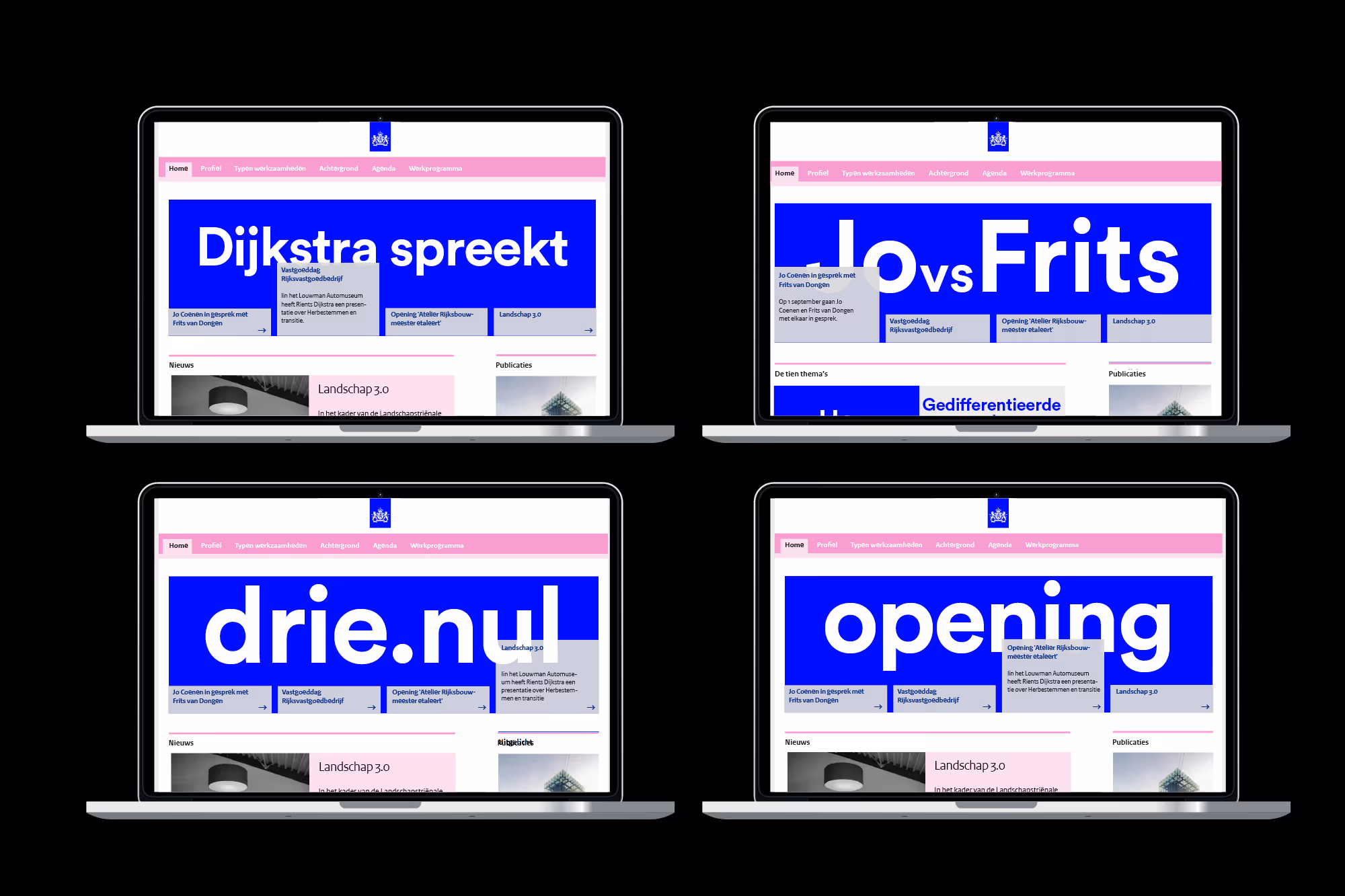 How do you create a separate identity within a large organisation as the government? Het College van Rijksadviseurs (formerly one person, the Rijksbouwmeester) is an independent advisory board that looked for an equally independent identity. We maintained the governmental feel while we pushed boundaries and stretched the notion of institutional means of communication.