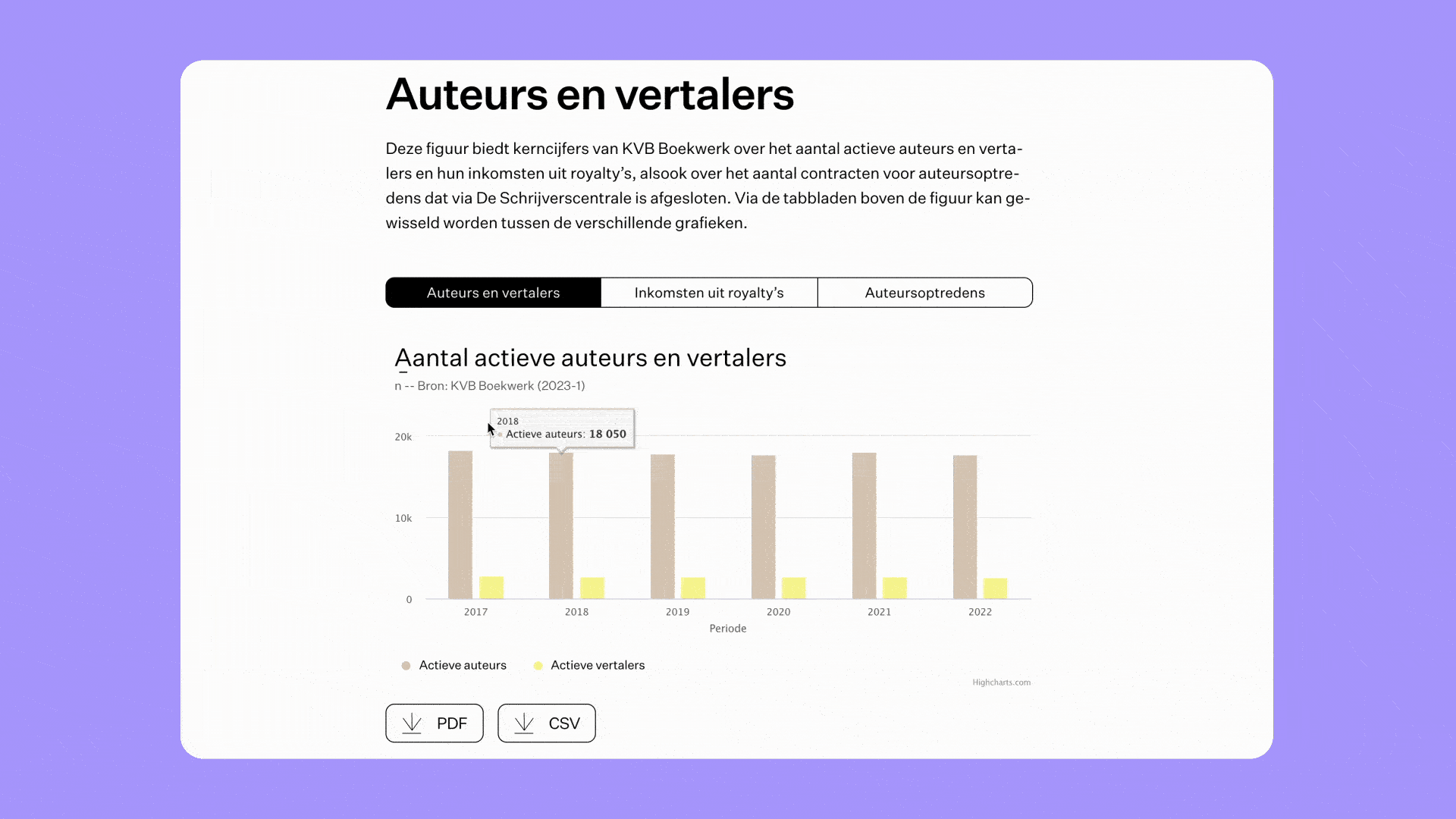 We designed the website to present these insights in a clear and engaging way. Through clear design and intuitive navigation, we made it easy for users to explore and interpret the data that shapes the Dutch cultural sector.